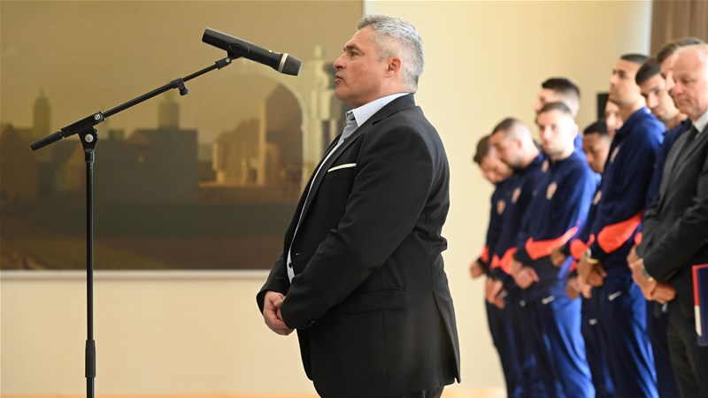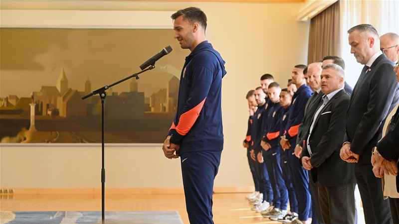 “Čestitam na velikom uspjehu i siguran sam da će ih biti još! Vaša natjecanja, rezultate, pobjede i poraze ćemo pratiti i navijati za vas i kada ne budete pobjeđivali.Pratio sam završetak natjecanja, polufinale protiv Španjolske, dramatično finale protiv Francuske - to su nogometna čudovišta i uopće biti u tom društvu govori o kvaliteti i relevantnosti tog natjecanja. Riječ futsal prije nije postojala, to se zvalo mali nogomet, ali nije saživio zbog pridjeva mali, deminutiva koji umanjuje u izražaju vrijednost nogometa. Ali, futsal je u stvari nogomet, po svemu je nogomet osim po dimenzijama i nekim sitnim detaljima”, rekao je predsjednik Republike Hrvatske Zoran Milanović.